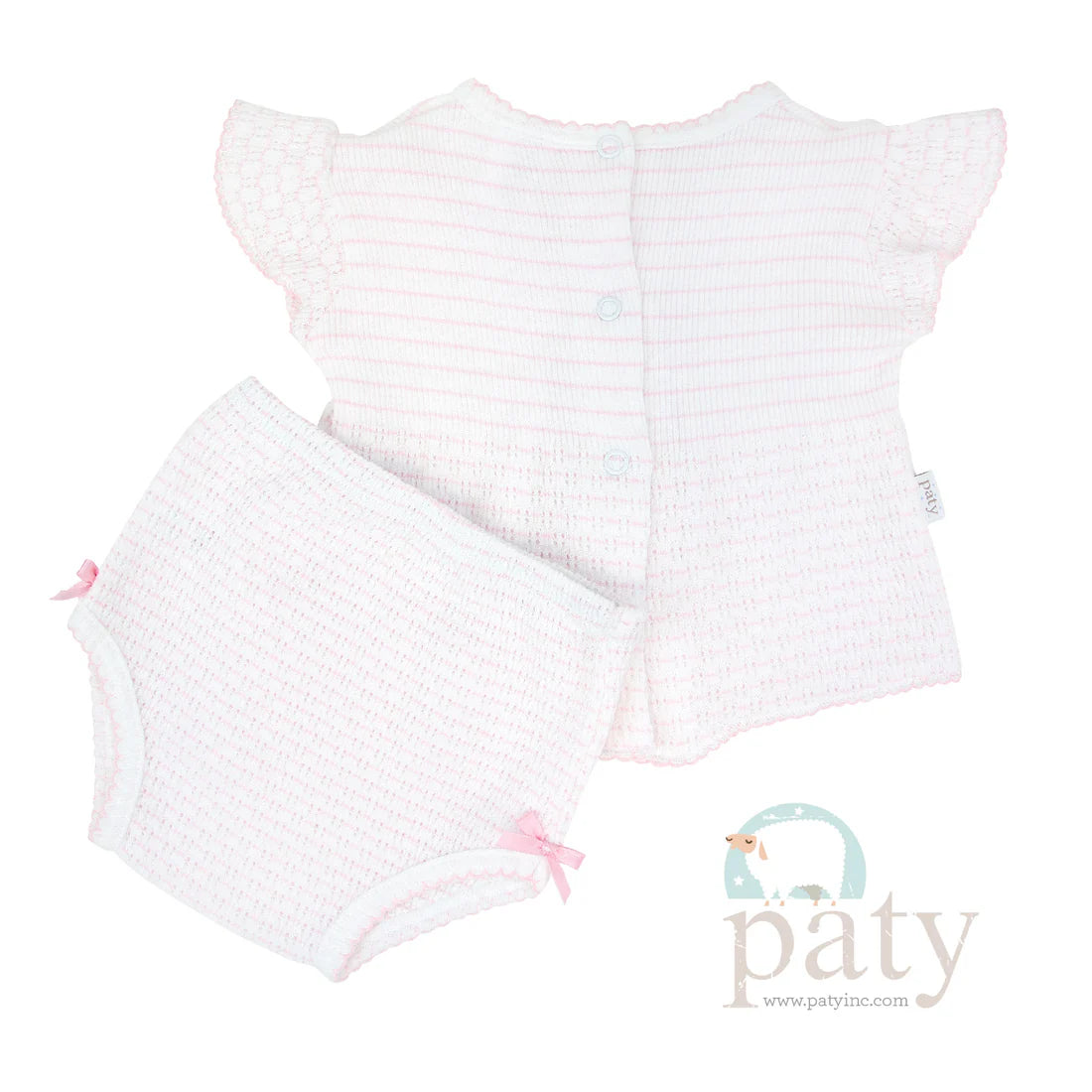 Pink Pinstripe Flutter Sleeve Paty Diaper Set