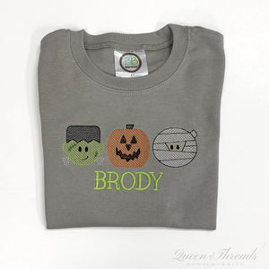 Sketch Zombie, Pumpkin, and Mummy on Grey Tee