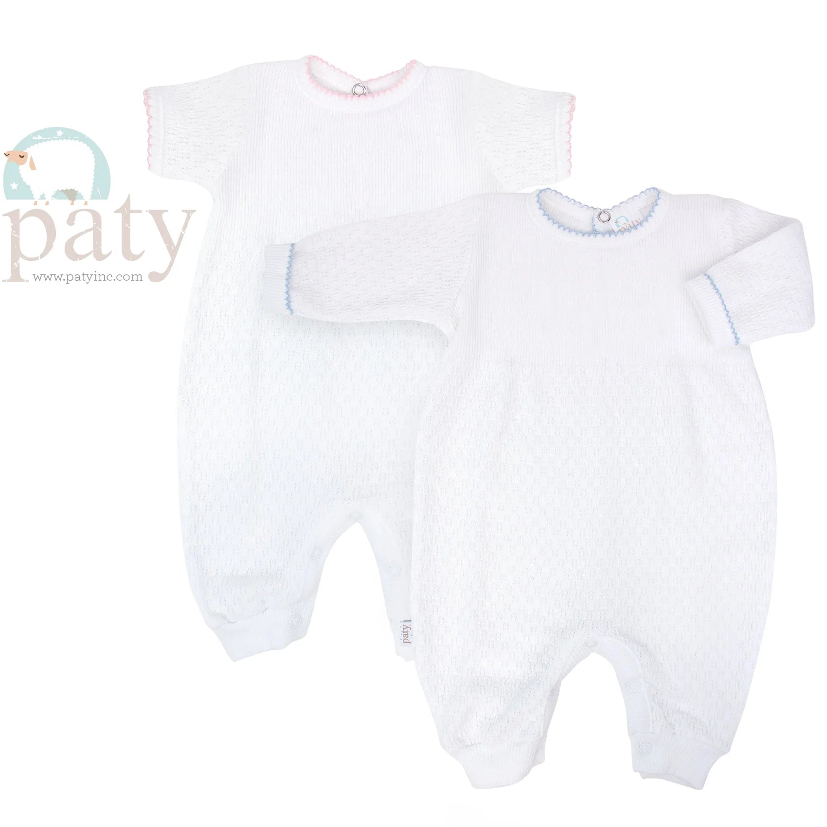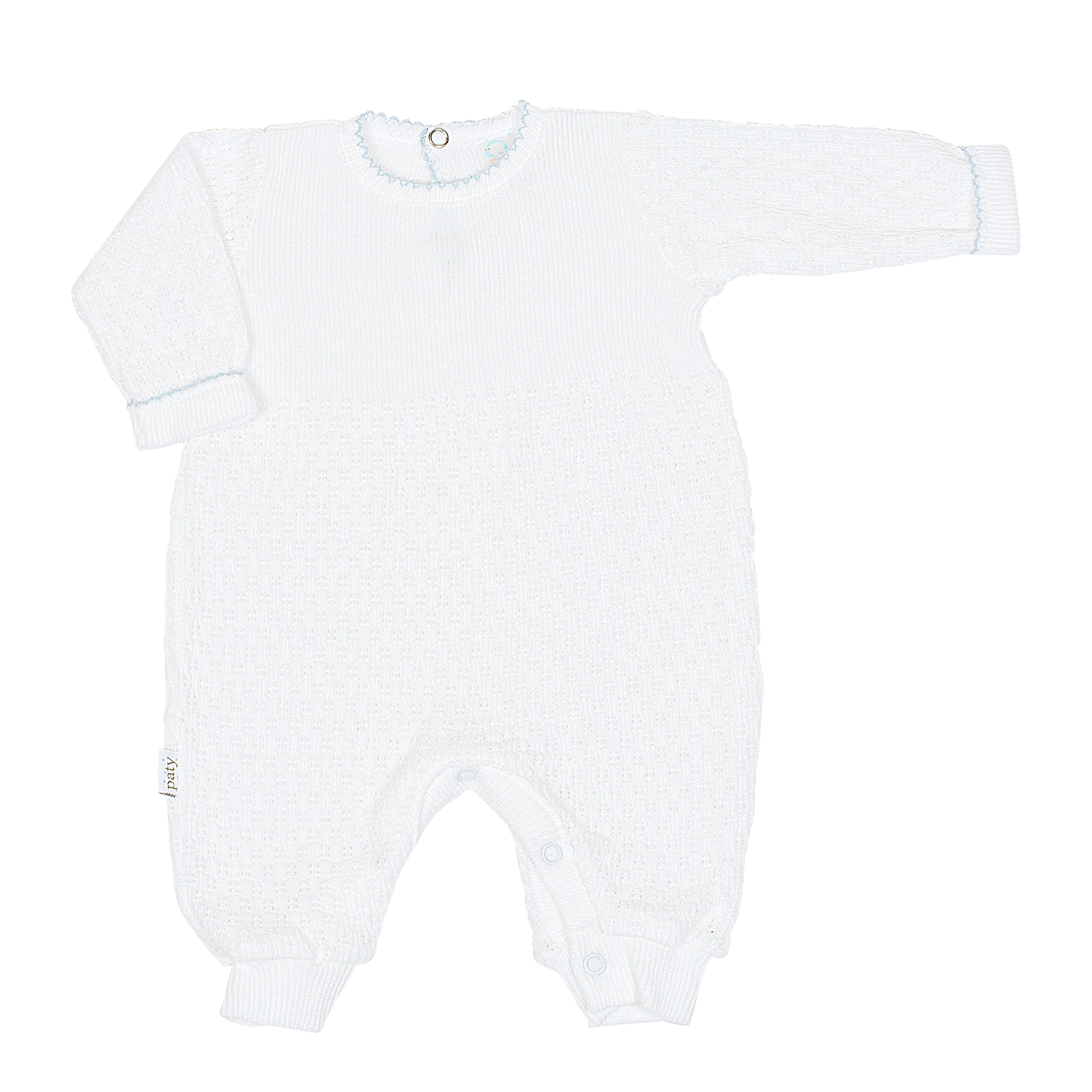 Paty White Cuffed Long Sleeve Romper with Trim
